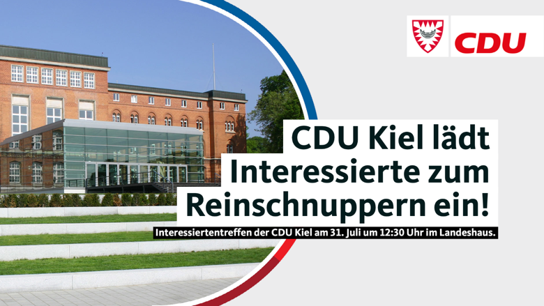 Am 31. Juli, um 12:30 Uhr, lädt die CDU Kiel interessierte Bürgerinnen und Bürger und neue Mitglieder in das Landeshaus, Düsternbrooker Weg 70, zu einem Schnuppertreffen ein.