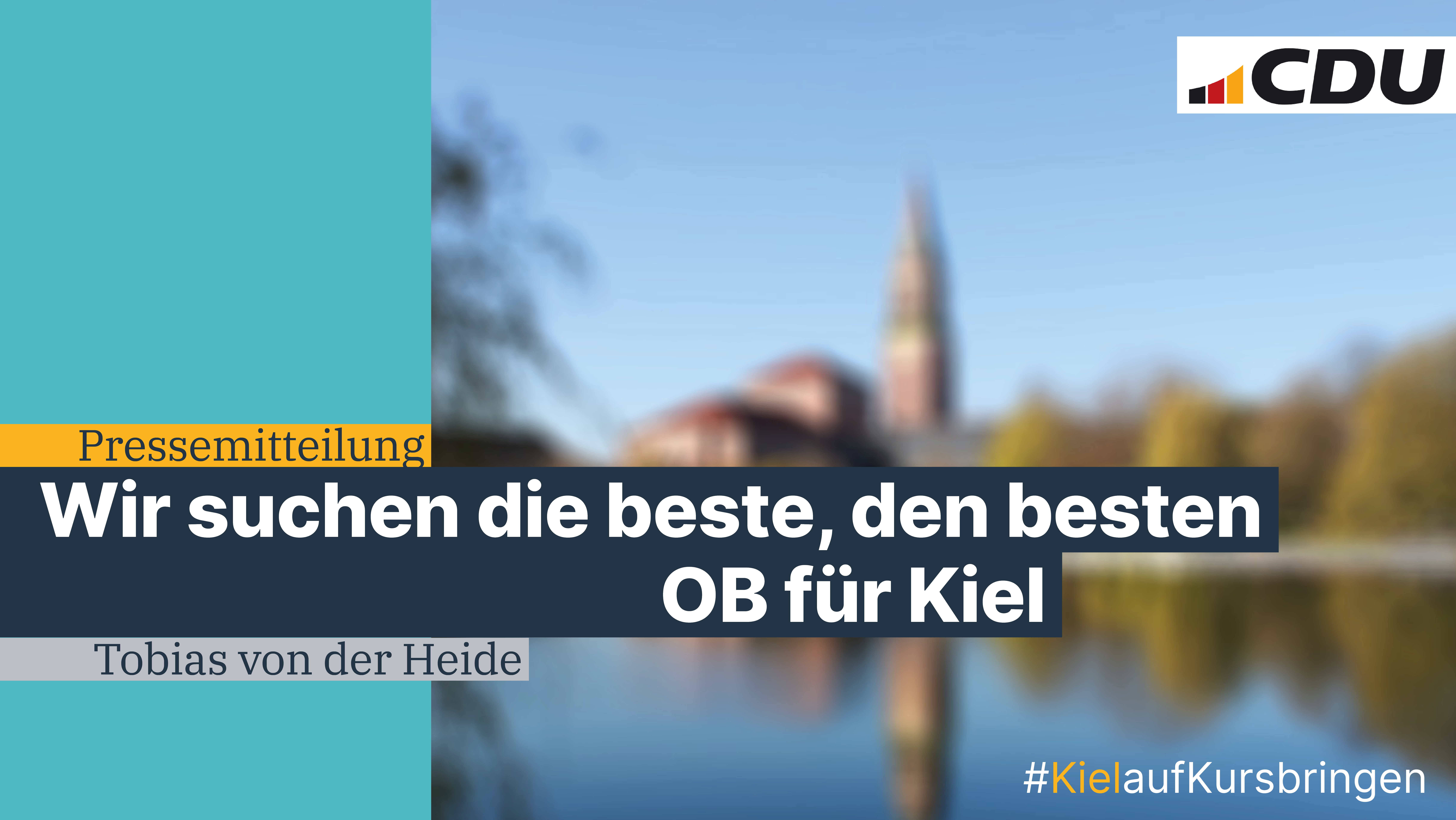 Auf der Sitzung des Kreisvorstandes hat die CDU Kiel eine Findungskommission bestehend aus Tobias von der Heide (CDU-Kreisvorsitzender), Seyran Papo (CDU-Landtagsabgeordnete), Rainer Kreutz (Vorsitzender der CDU-Ratsfraktion), Angelika Volquartz (ehemalige Kieler Oberbürgermeisterin), Andreas Ellendt (Stellvertretender CDU-Kreisvorsitzender und letzter OB-Kandidat der CDU Kiel) und Ann Kristin Johannsen (Kreisgeschäftsführerin) für eine OB-Kandidatin oder einen OB-Kandidaten eingesetzt. Hierzu erklärt der Kreisvorsitzende der CDU Kiel, Tobias von der Heide: „Oberbürgermeister Kämpfer wirkt nicht mehr "amtsmunter", dies hat sein Interview über den Jahreswechsel verdeutlicht. Wer schon jetzt über eine Karriere außerhalb des Rathaus spekuliert, scheint sich nicht mehr mit voller Kraft für das Amt einzusetzen. Seine Bilanz nach 10 Jahren ist alles andere als berauschend. Vor allem in den letzten 4 Jahren erleben wir kaum umgesetzte Visionen für die Stadt. Autofahrer werden aus der Stadt vertrieben, es herrscht eine Kluft zwischen der Innenstadt und den Randbezirken. Gerade bei diesem Thema ist es dem Oberbürgermeister nicht gelungen verschiedene Meinungen und Positionen zusammenzubringen. Wichtige Themen wie die Entwicklung des MFG 5 Gelände wurden nicht angepackt. Auch die Probleme im Bürgerservice der Stadt und den Ausländeramt sind nicht gelöst. Um einige konkrete Beispiele zu nennen. Wir brauchen in Kiel dringend einen Wechsel an der Verwaltungsspitze. Wir suchen eine Persönlichkeit die anpackt und nicht von immer neuen Projekten träumt! Dafür haben wir im Kreisvorstand eine Findungskommission gebildet.