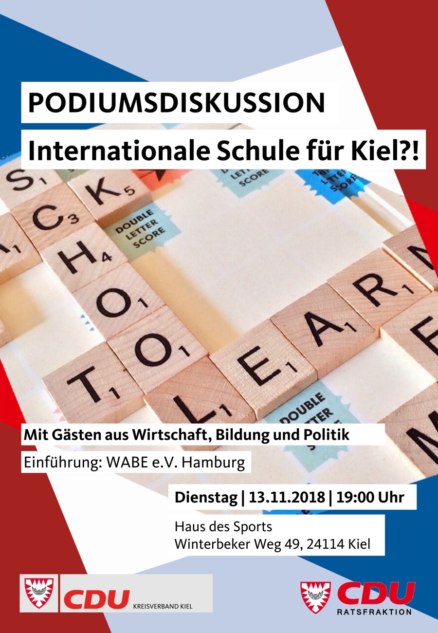 Im Mai 2017 hatte die CDU-Ratsfraktion auf Grund ihrer Idee, in Kiel eine Internationale Schule aufzubauen, einen entsprechenden Prüfantrag im Rat gestellt, der nach diversen Zurückstellungen endlich im Januar 2018 beschlossen worden war.